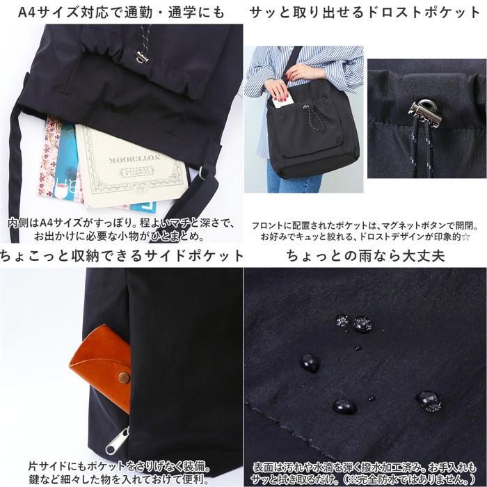 商品説明 | ・・くしゅくしゅとしたフォルムに、ドロストポケットがアクセント♪Legato Largoから「ドロストバック A4ショルダー」が新登場。 ・【カジュアルライクなデザイン】 ・シャリっとした張り感と光沢のあるナイロン素材。落ち着きのある仕上がりで、大人のカジュアルコーデにマッチ。 ・【デイリーに使い回せるアイテム】 ・サッと持ち出せて体に負担がかからず、使い心地軽やか。お買い物やレジャー、旅行でも重宝。 ・【両手が空いて身軽にお出かけ】 ・長さ調節可能なワンショルダータイプ。肩掛けも斜め掛けもできて、両手をふさがず移動もストレスフリー◎ ・【ワンタッチで簡単オープン】 ・開口部は片手で開閉できるマグネットボタン式。大きく開いて中身を見渡しやすく、ボタンを閉じれば小物の飛び出しをガード◎ ・【A4サイズ対応で通勤・通学にも】 ・内側はA4サイズがすっぽり。程よいマチと深さで、お出かけに必要な小物がひとまとめ。 ・【サッと取り出せるドロストポケット】 ・フロントに配置されたポケットは、マグネットボタンで開閉。お好みでキュッと絞れる、ドロストデザインが印象的☆ ・【ちょこっと収納できるサイドポケット】 ・片サイドにもポケットをさりげなく装備。鍵など細々した物を入れておけて便利。 ・【ちょっとの雨なら大丈夫】 ・表面は汚れや水滴を弾く撥水加工済み。お手入れもサッと拭き取るだけ。(※完全防水ではありません。) ・【年代問わず使えるシンプルさ】 ・使う人を選ばない無地カラー。お気に入りの色をチョイスして♪ ・【ポケット仕様】 ・内側:オープンポケット×1 ・前面:マグネット式ドロストポケット×1 ・サイド:ファスナーポケット×1 |