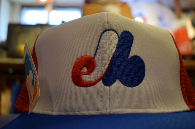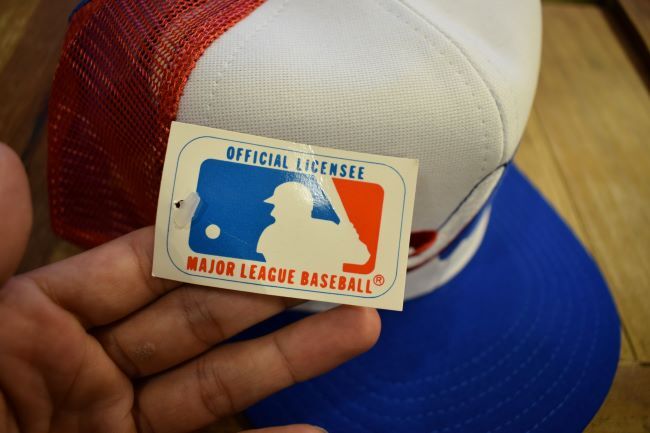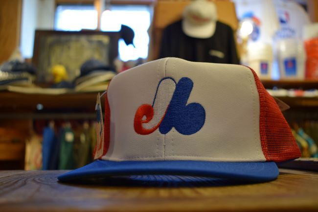 デッドストック品未使用品90sビンテージMLBメジャーリーグプロモデルモントリオールエクスポズメッシュキャップ白赤青SMアメカジh24757