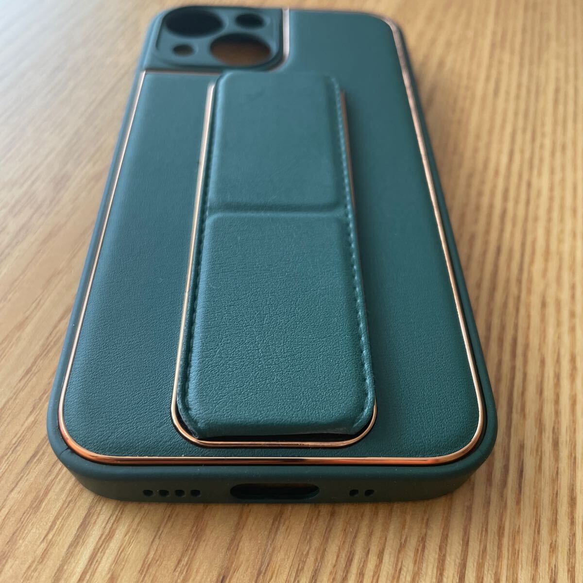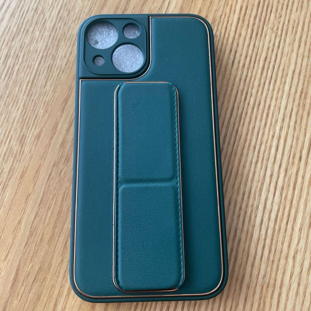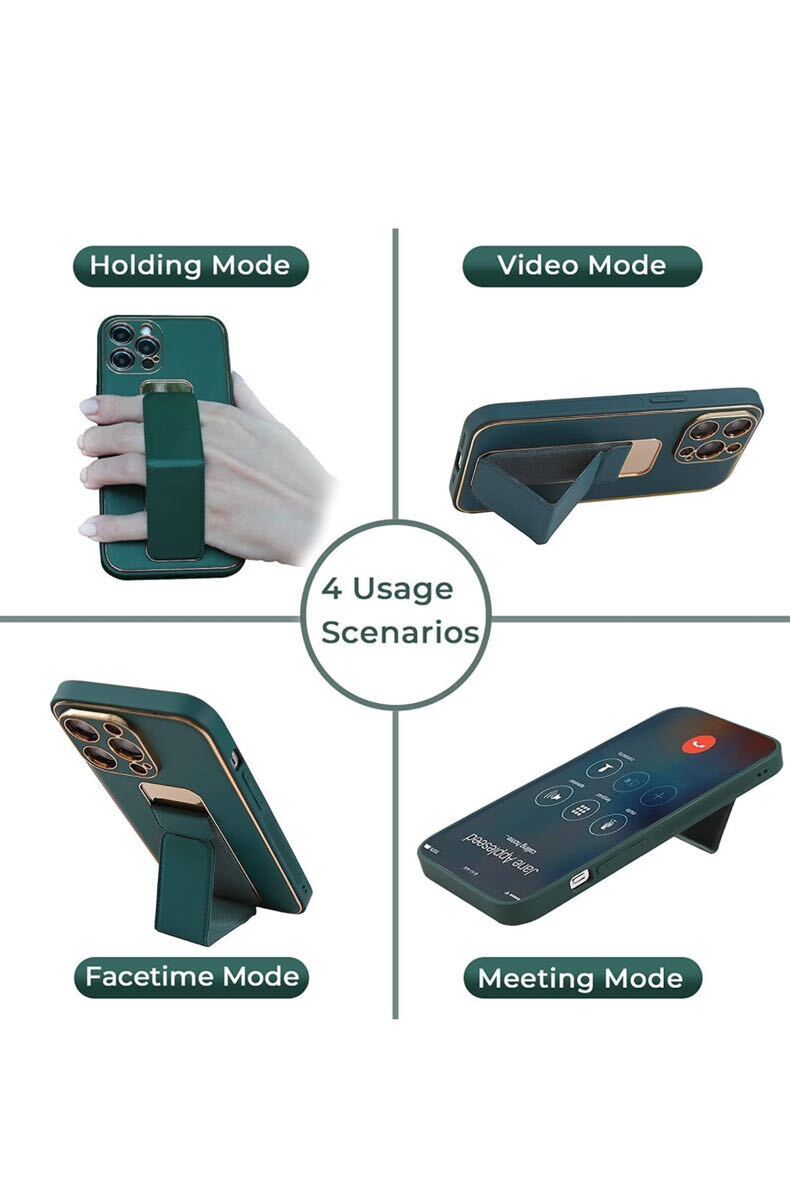 HANDODO for iPhone 13MINI用 ケース スタンド機能ビーガンレザー 耐衝撃 グリップバンド付き アイフォンカバー カメラ保護 衝撃吸収 耐汚れ 全面保護 携帯ケース(エメラルド)