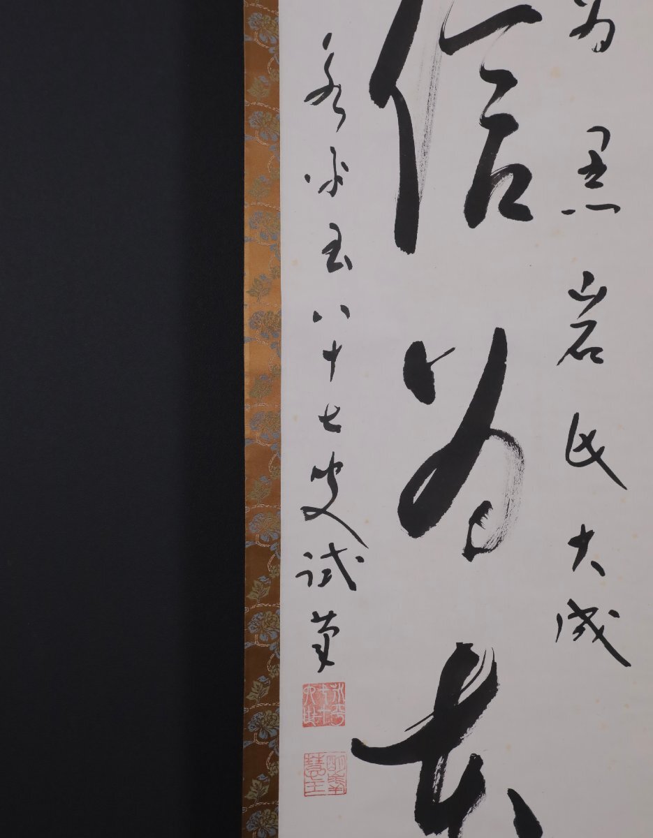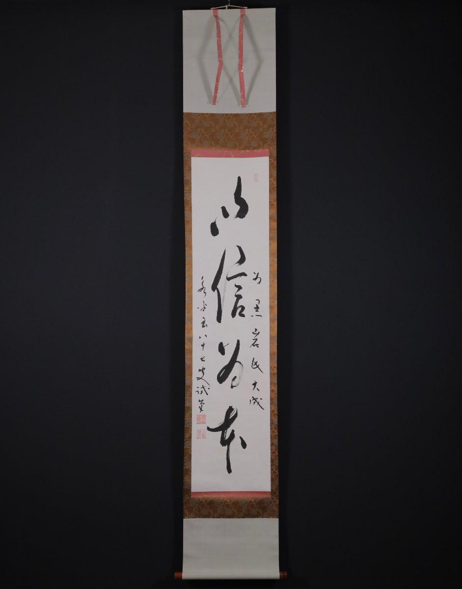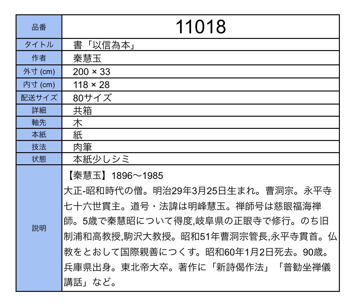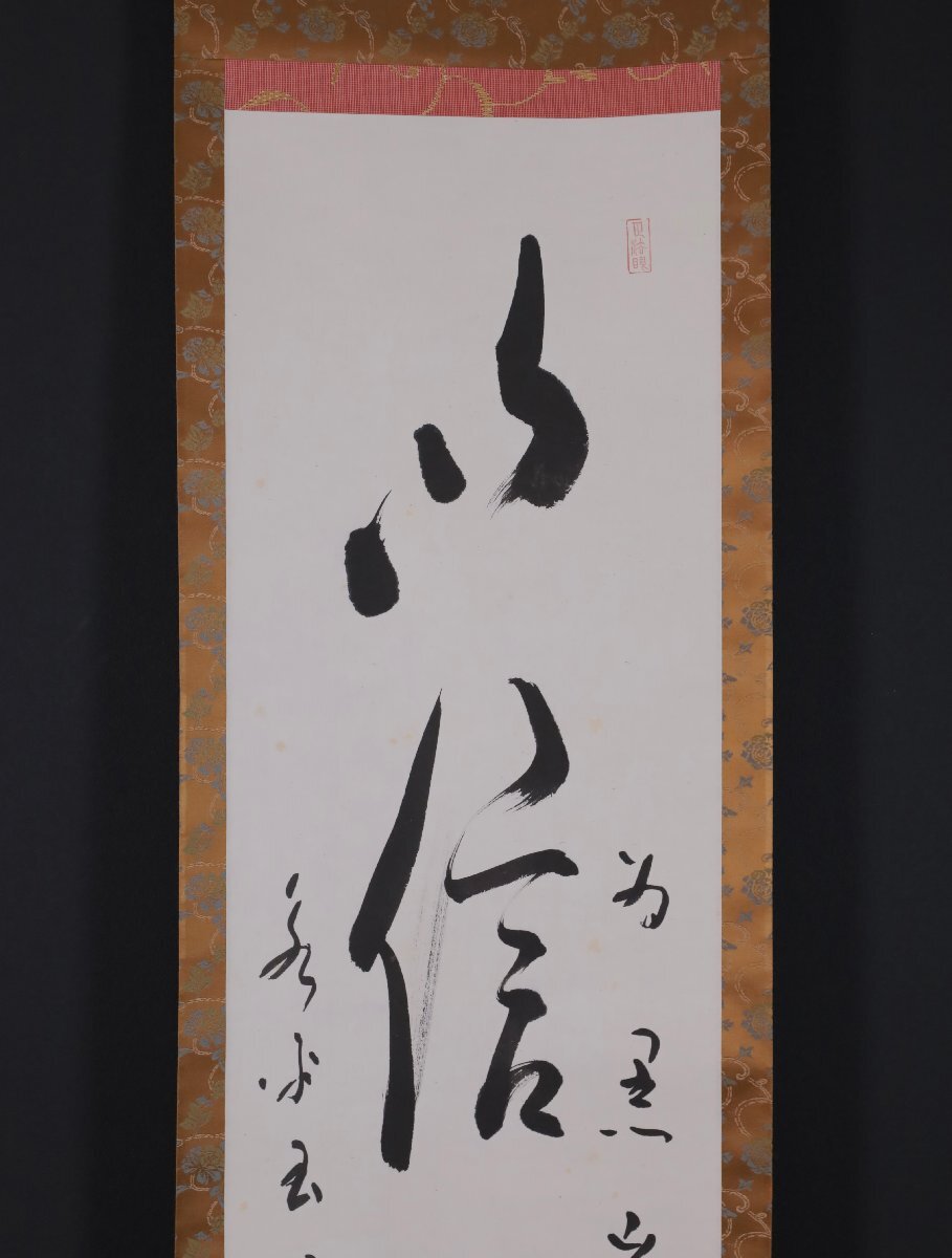【模写】吉】11018 秦慧玉 書「以信為本」 共箱 曹洞宗 永平寺 駒沢大教授 秦慧昭師事 兵庫県の人 仏教 茶掛け 茶道具 禅語 掛軸 掛け軸