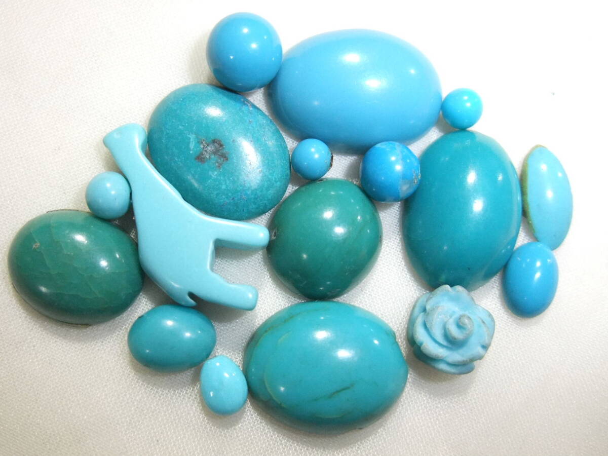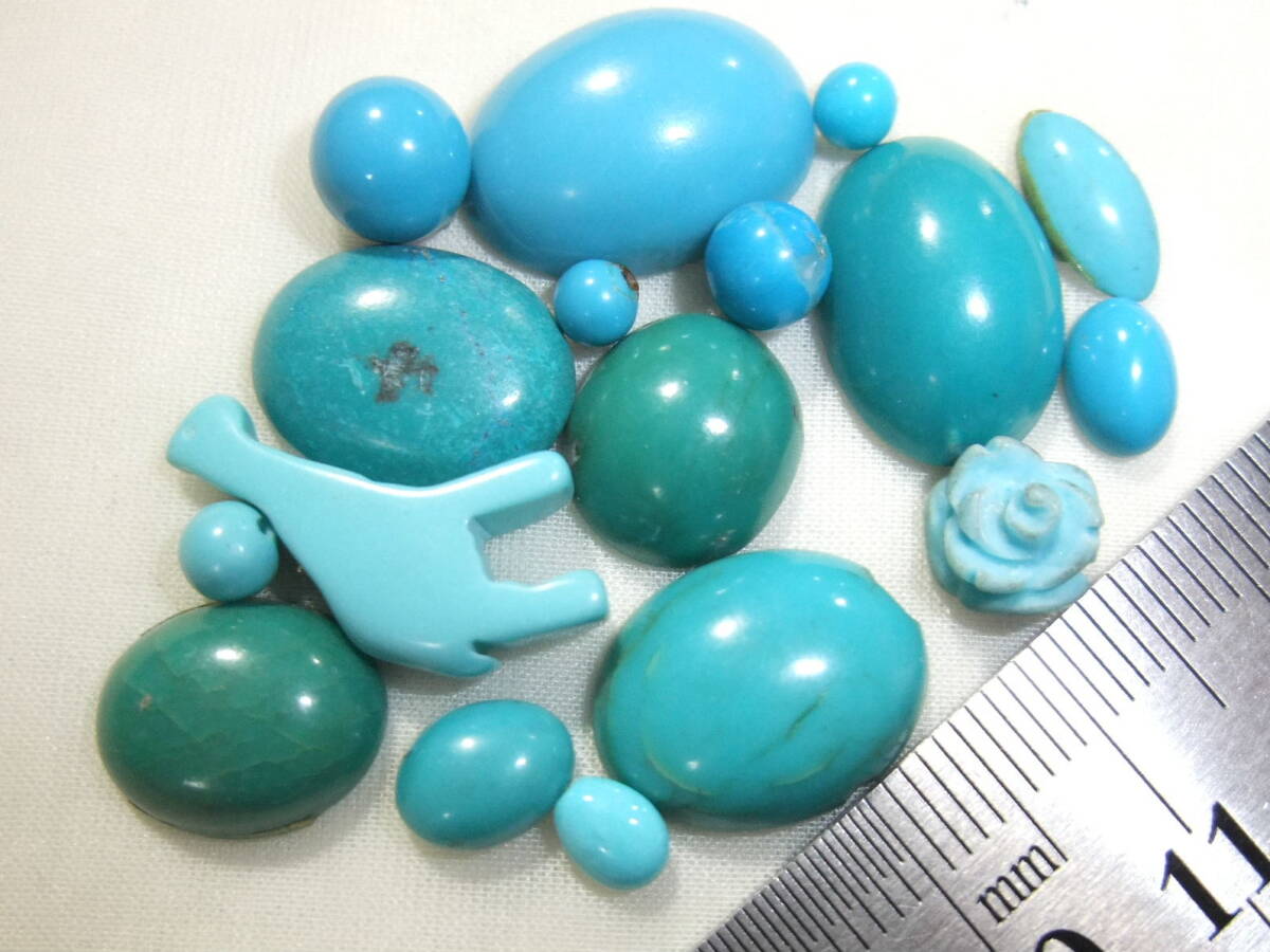 本物のターコイズトルコ石がメインですが、このシリーズのアソートは、貴金属やシルバー製品から外したものなので、比較的綺麗なものの他に普通にジャンクやB品、その他天然石や加工石人工石も入ると思います☆外し石なので産地はアメリカ産やその他の国や地域色々混じり、外した際の壊れたもの欠けたもの割れたもの等ジャンクやB品も普通に混じります☆また外した時に残った接着や硬化剤、金属処理痕、シルバーペースト痕、バッキングやその剥がれや汚れなどもそのままです。現状渡しでお安くしているのでその旨ご理解いただける方にお願いいたします。