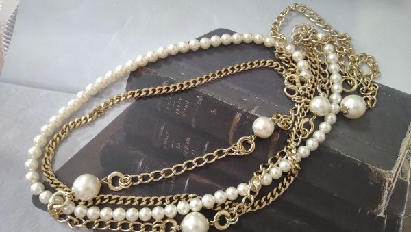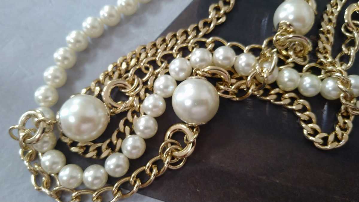 | パールビーズ×ゴールドカラーチェーン チェーンベルト | |||||||||||