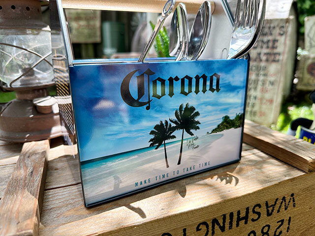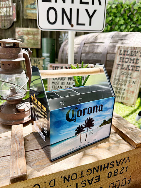 ブリキ素材ならではのレトロ感と、コロナの爽快な海のデザインが絶妙にマッチしてるでしょ?