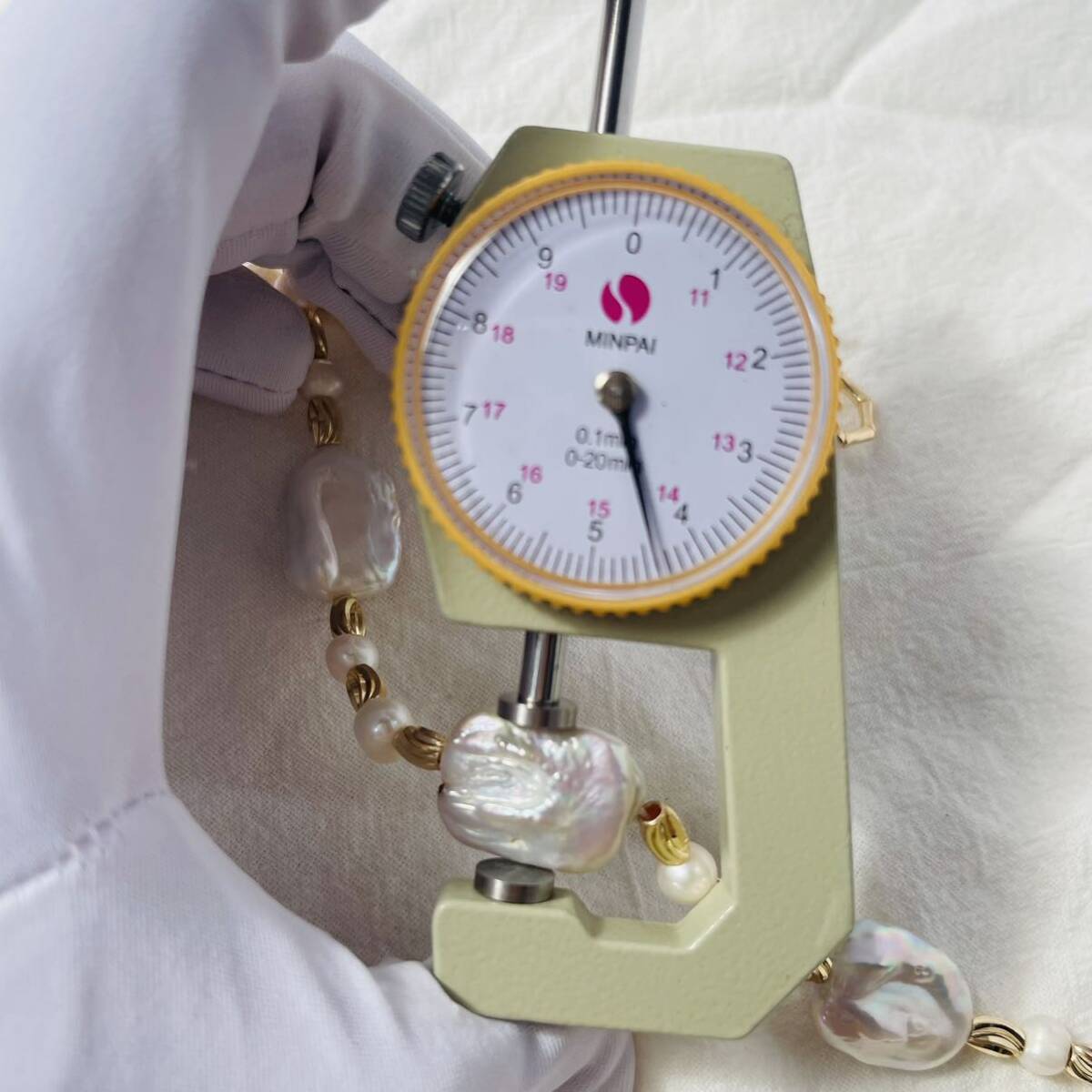 パールは核がないため、丸い近い形で育つものは非常に稀。バロック型といわれる、いびつな形のものが一般です。しかも7-9mmの大きさになるまでは5~6年もの長い年月がかかります。約8年もかかる10mm玉となる と、1万個にひとつしか出来ない稀少な名品です。