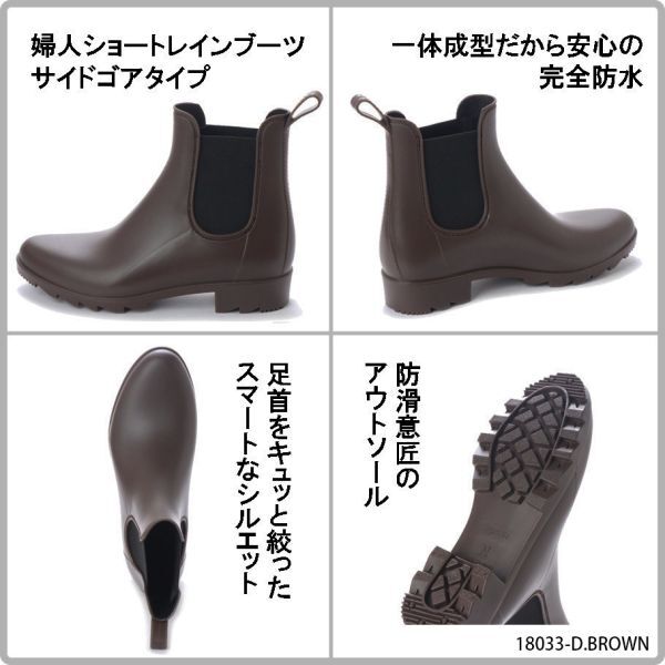 レディース ショート レインブーツ ダークブラウン LL(24.5-25.0cm) ショートブーツ サイドゴアブーツ チェルシーブーツ 晴雨兼用 18033