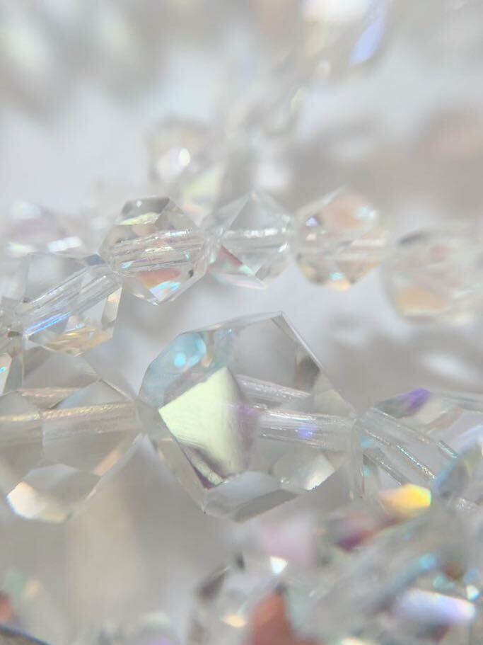 こちらのクリスタルビーズは、一見するとミラーボールカットのようですが、アシンメトリーのような16面カットが施され、どこかユニークでモダンな雰囲気がございます。