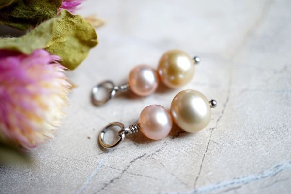 【フープ用チャーム】サージカルステンレス150 淡水真珠 チャーム 1ペア 金属アレルギー対応金具使用 ピアスチャーム