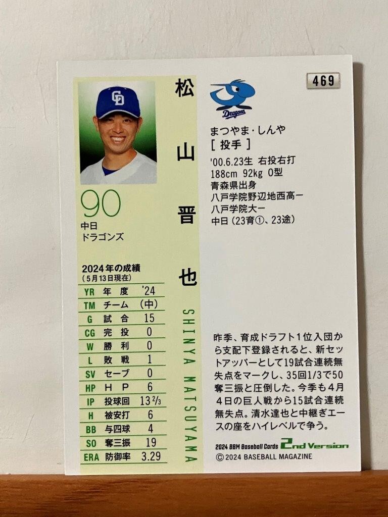 【2024 BBM 2nd】469松山晋也(中日ドラゴンズ)レギュラーカード