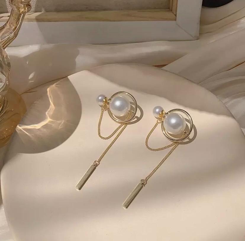 324 ゴールド ピアス パールチェーン 韓国 イヤリング s925 オパール ジュエリー アクセサリー インポート 韓国 宝石 ブライダル 結婚式