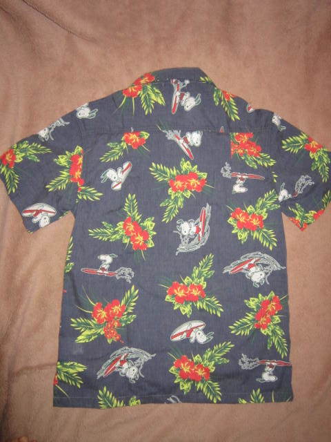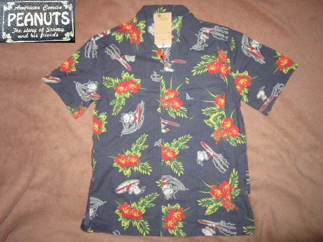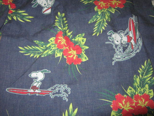 PEANUTS ピーナッツ スヌーピー サーフィン柄 アロハシャツ M サーフ SURF サーファー ハイビスカス ココナッツボタン