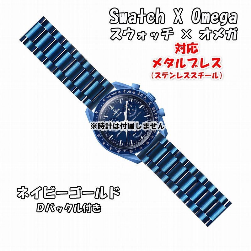 Swatch×OMEGA スウォッチ×オメガ 対応メタルブレス ネイビーゴールド Dバックル付き
