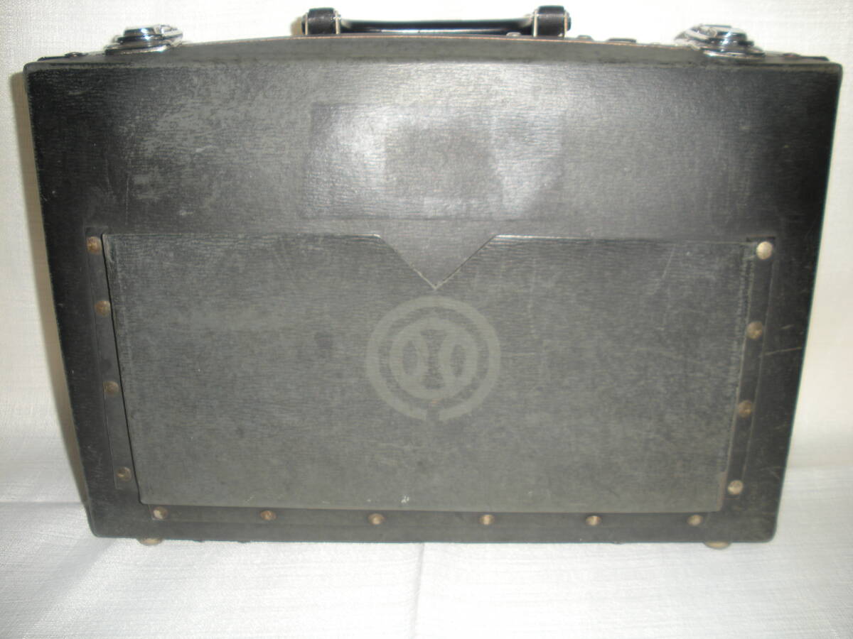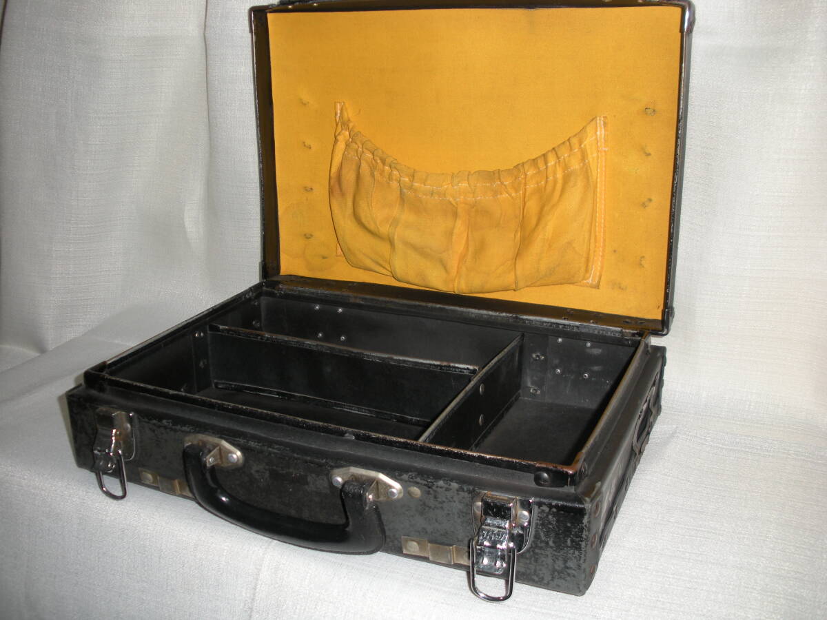 ご覧いただきありがとうございます。全面正面に野球のボールをイメージした社章(マーク)の入っている西武鉄道の乗務員鞄です。薄い金属製です。横36cm、縦24cm、奥行8.5cm、重さは約1.2kgです。鞄の中は、3つに仕切られ、蓋の内側は黄色の布が貼り付けられ、袋状のポケットがついています。全体的に痛みや傷がたくさんありますが、機能的には問題なさそうです。よろしくお願いいたします。