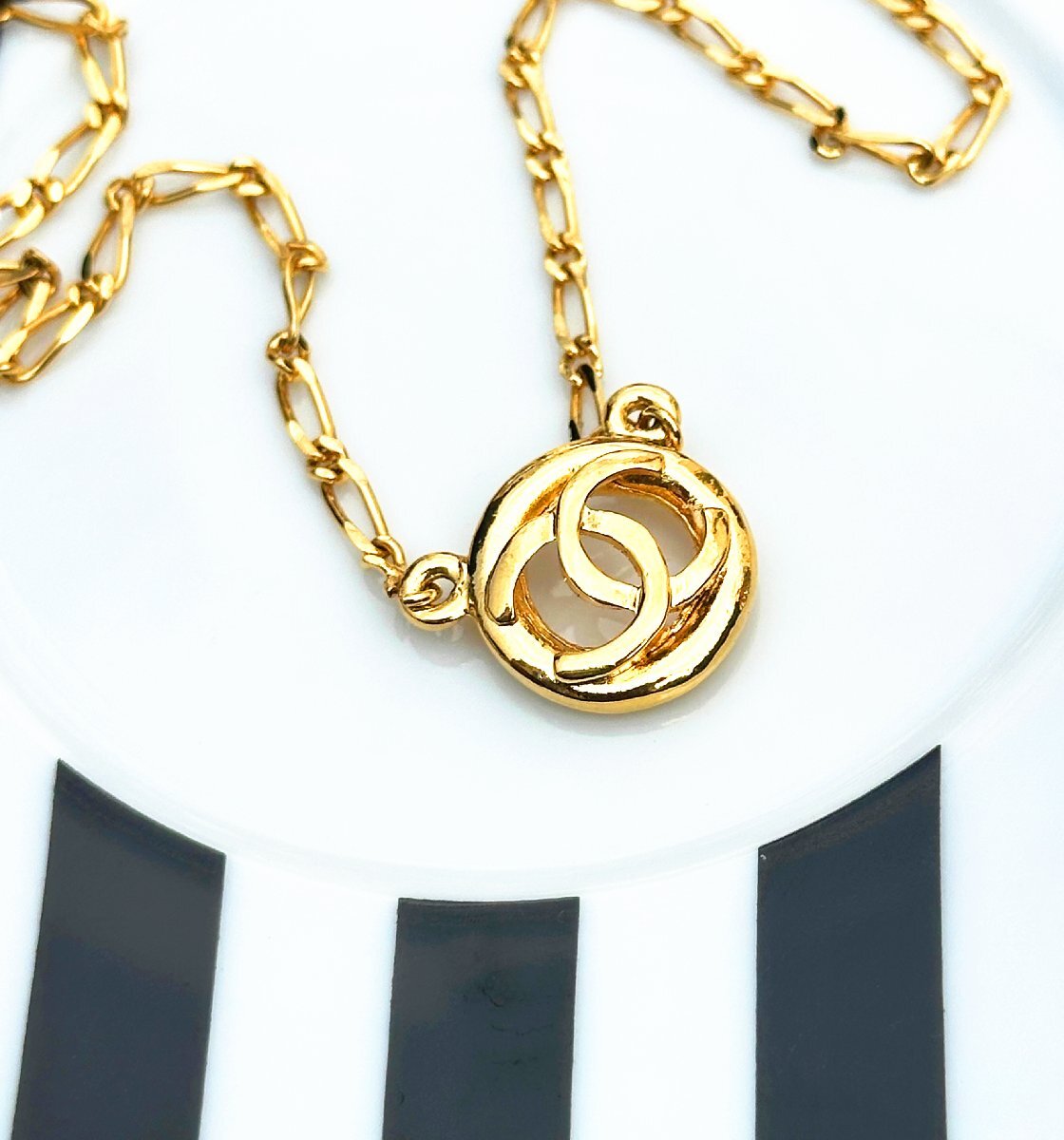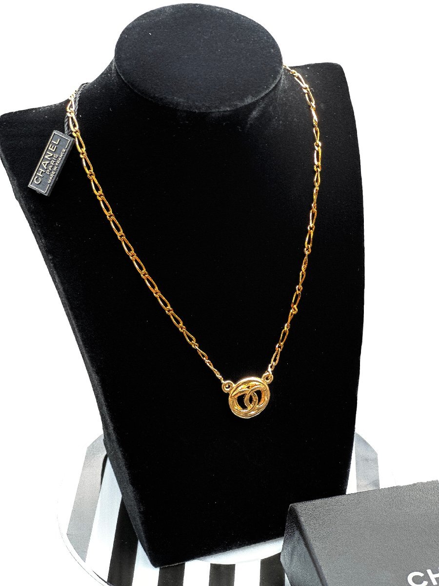 | 超美品箱付き◆本物◆CHANELシャネルヴィンテージVintage両吊り丸い型ココマークCOCOネックレスアクセサリー刻印あり |
