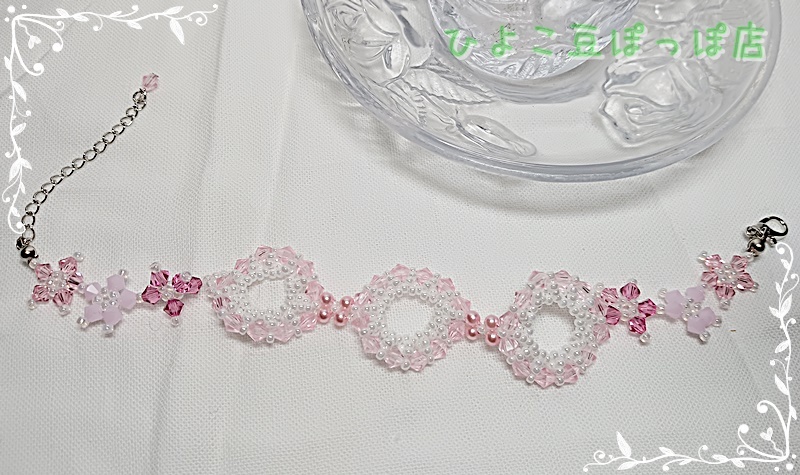 130:pinkフープとミルクの雫 スワロフスキーブレスレッド  17+5cm