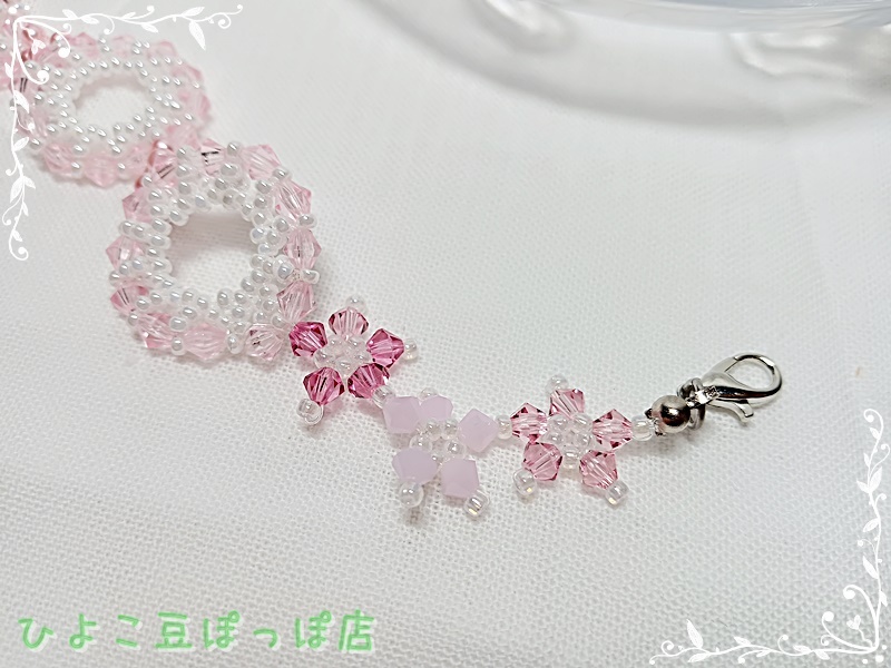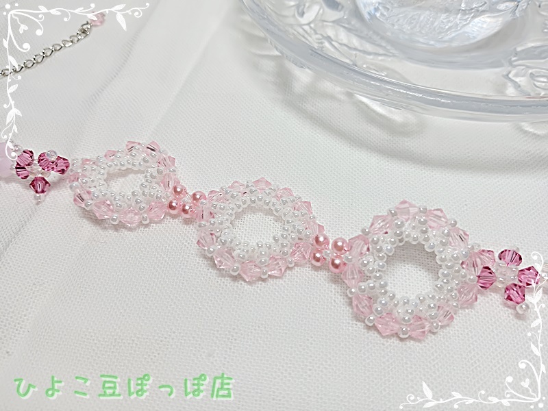 材料:コーティングパール・スワロフスキー・カニカン・アジャスター・テグス