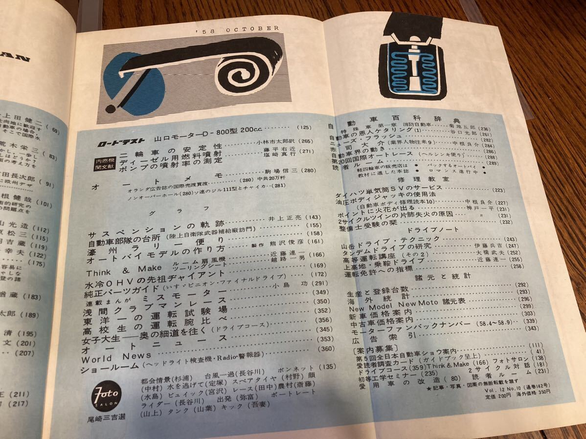 モーターファン 1958年 10月号 ポインターエース メイハツ125ローズ ヤマハ ヂャイアント DSK