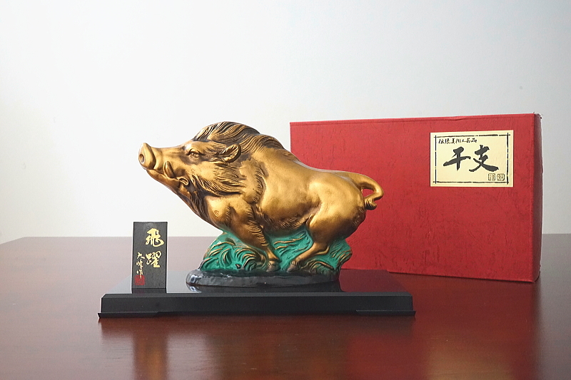 ・高岡銅器 伝統美術工芸品 干支いのしし「飛躍」大峰作(未使用新品)