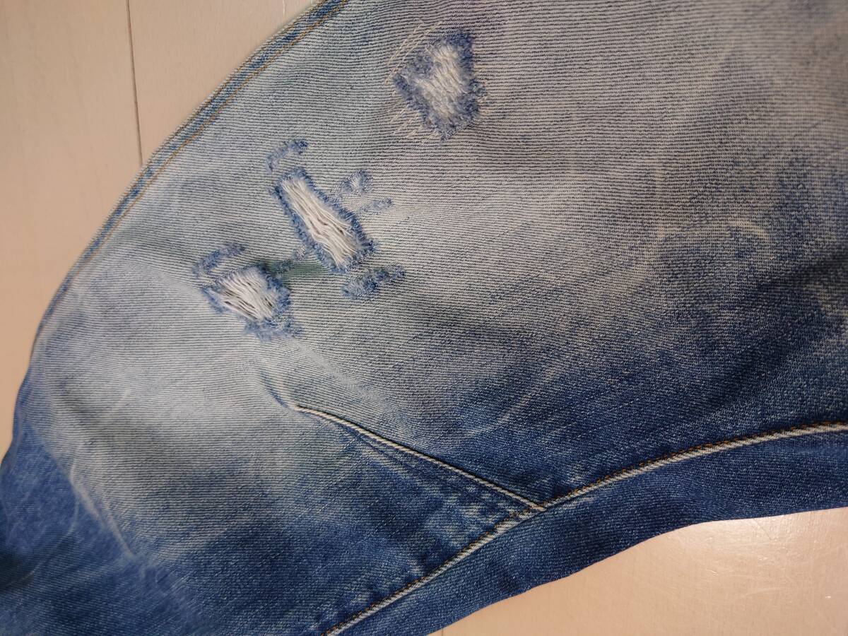 ふんだんなウォッシュ&ダメージ&リペア加工が施された、色落ちが美しいインディゴブルー♪