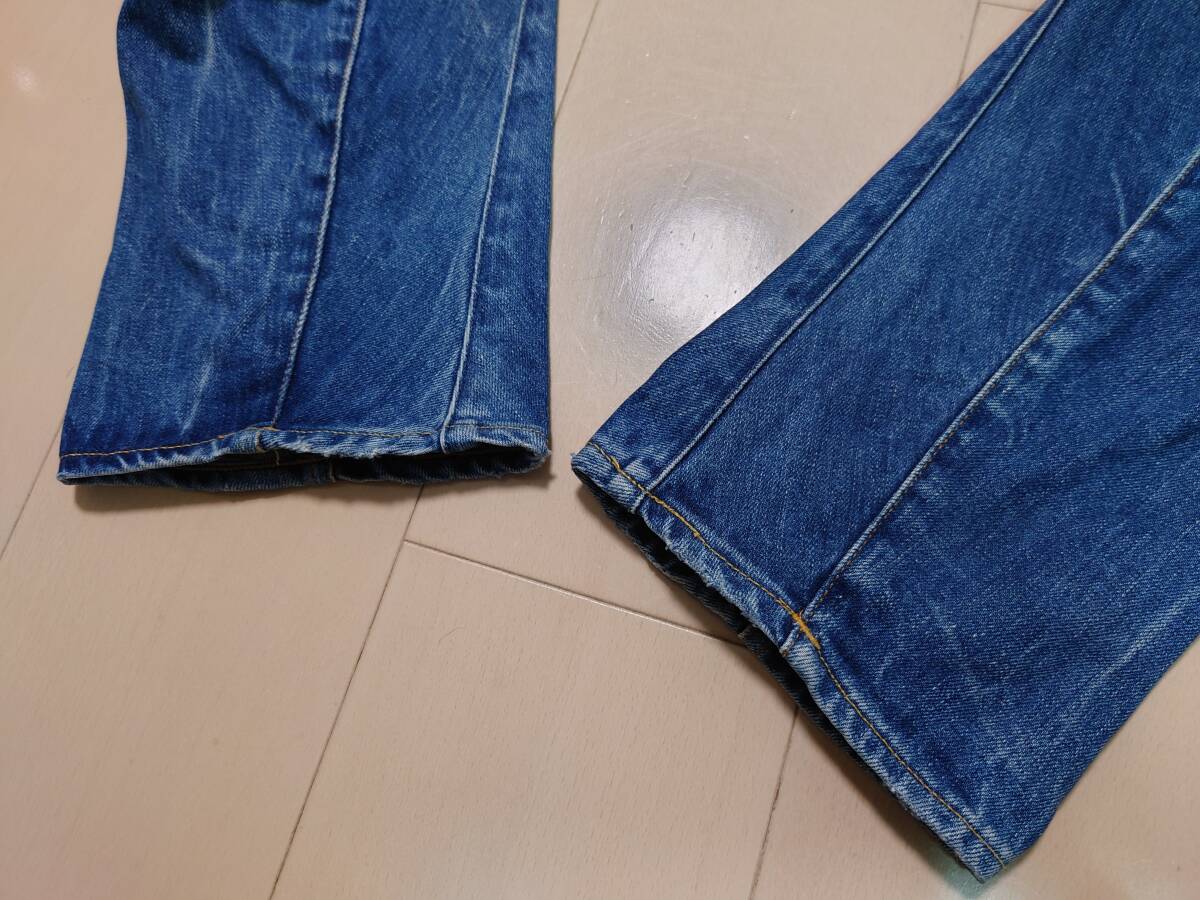 ウエスト78Cm、総丈111Cm、レングス81Cm(裾上げ無し)、股上26Cm、わたり27Cm、膝幅23Cm、裾幅18Cm、ヒップ110Cm