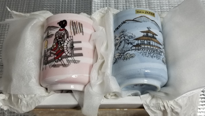 | 大きさは 金閣寺が 直径約65mm 高さ約90mmです。 重さは約180g。 舞子- 直径約60mm 高さ約65mmです。 重さは約120g。 |