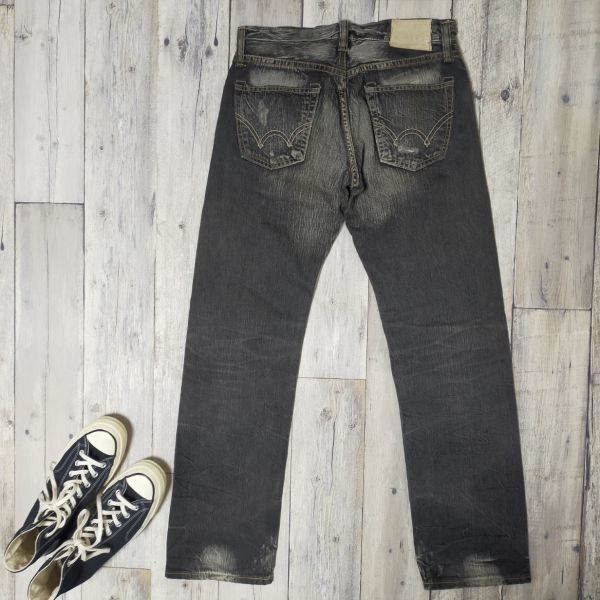 ☆EDWIN エドウィン☆503RV USED クラッシュ リペア加工 ブラック デニム W28 S1085
