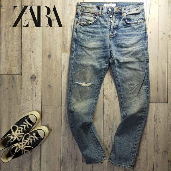 ☆ZARA MAN ザラ☆USED クラッシュ 加工 デニム W30 S417