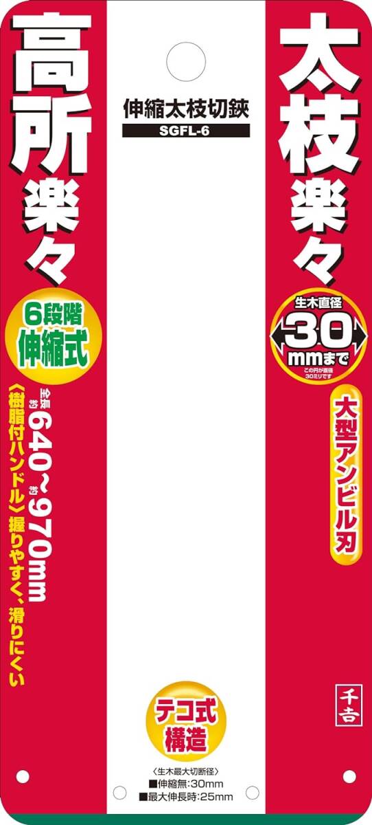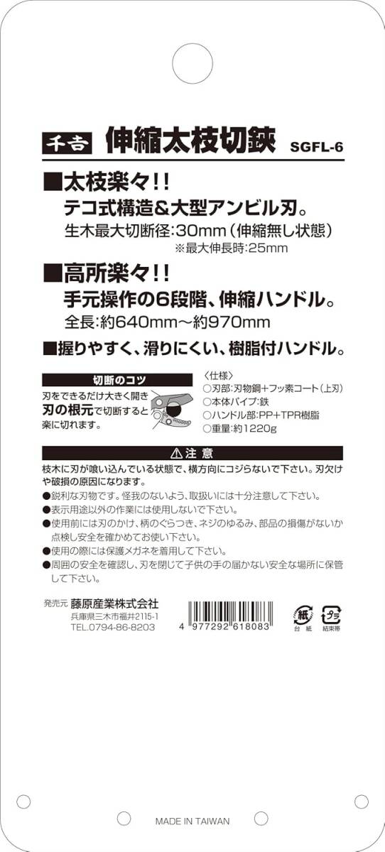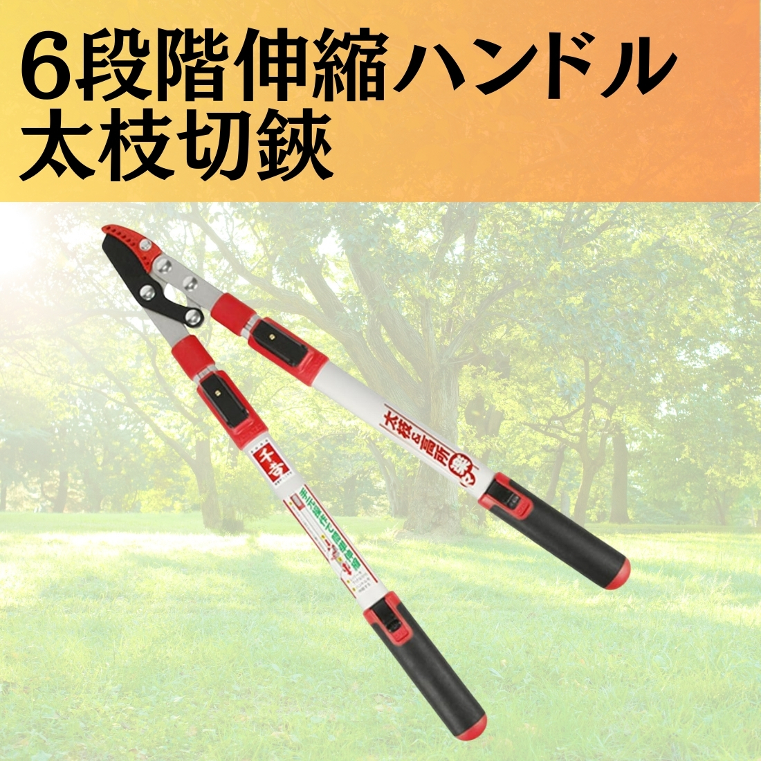 【6段階伸縮ハンドル】太枝切鋏 六段階伸縮式 640~970mm 生木30mmまで フッ素コート・樹脂ハンドル