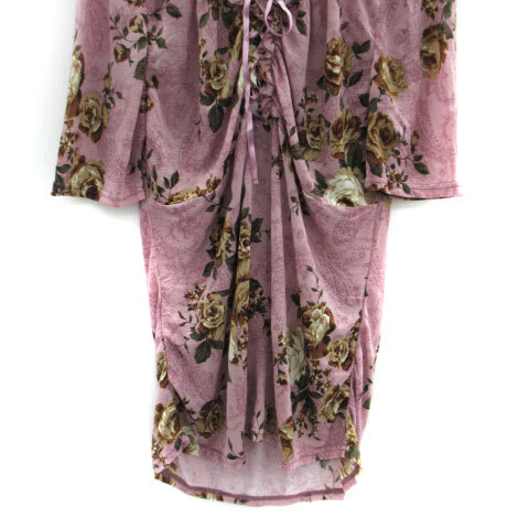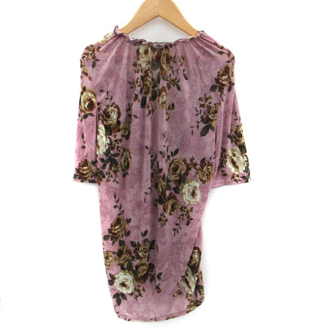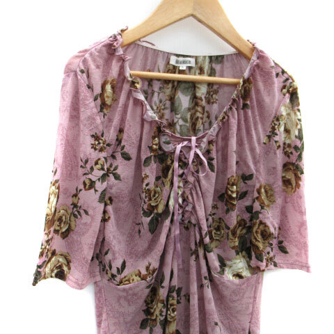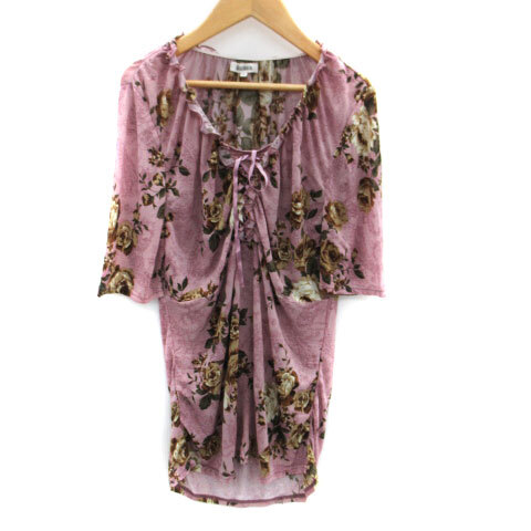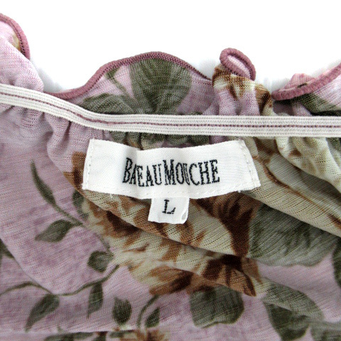 バトームーシュ BATEAU MOUCHE カットソー 半袖 ラウンドネック 花柄 フリル L マルチカラー ダスティピンク /SM9 レディース