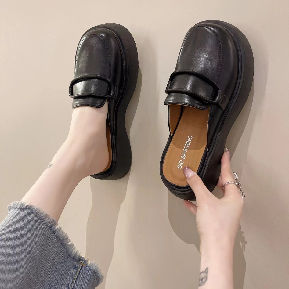 OHJ2384☆新品春 夏 ローファー ミュール 厚底ミュール サンダル パンプス 海辺 日常 サイズ選択可