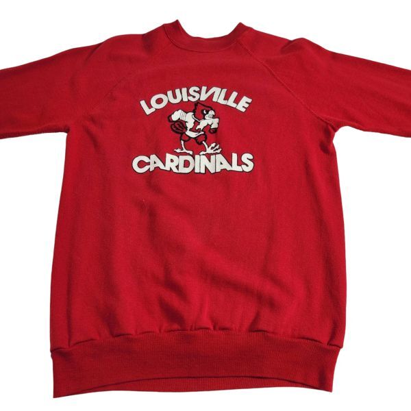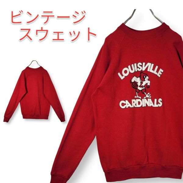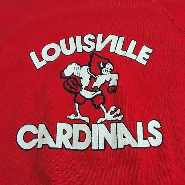 80s LOUISVILLE CARDINALS カレッジロゴ スウェット 赤 レッド トレーナー カージナルス ラグラン ビンテージ プリント 裏起毛