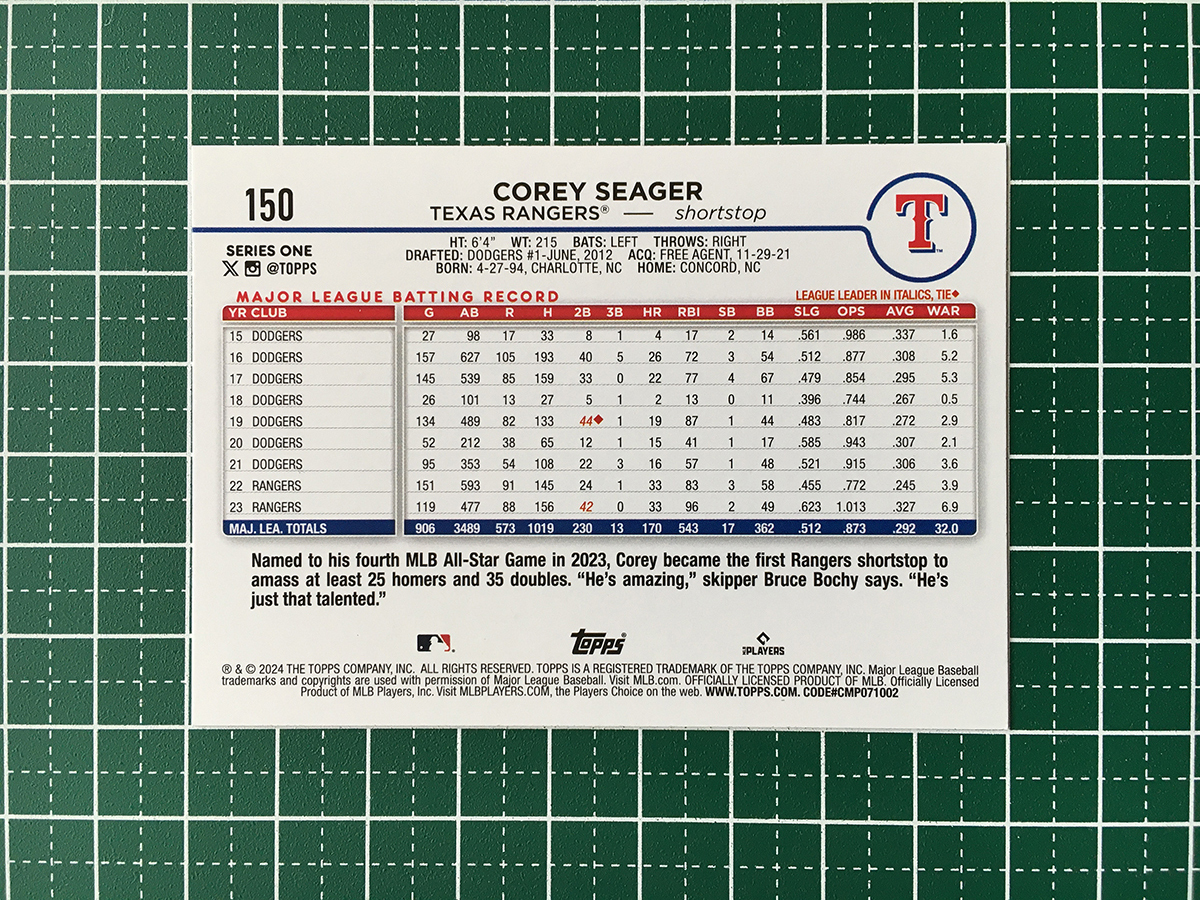 ★TOPPS MLB 2024 SERIES 1 #150 COREY SEAGER[TEXAS RANGERS]ベースカード「BASE」★