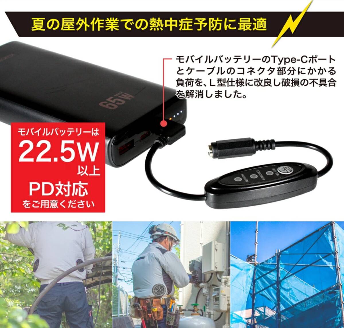 22.5W PD対応バッテリー専用 バートル 空調服ファン AC08-1 AC08-2 用 15V昇圧 タイプC 変換アダプター 変換ケーブル 風量切替 【15V-C1】