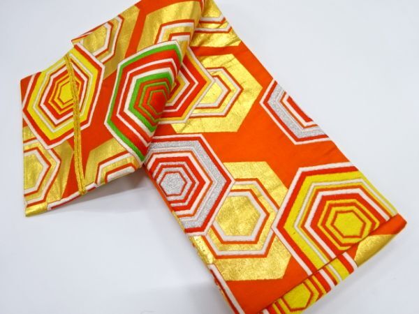 ys7140967; 重ね亀甲模様織り出し子供帯(着用可)【アンティーク】【着】