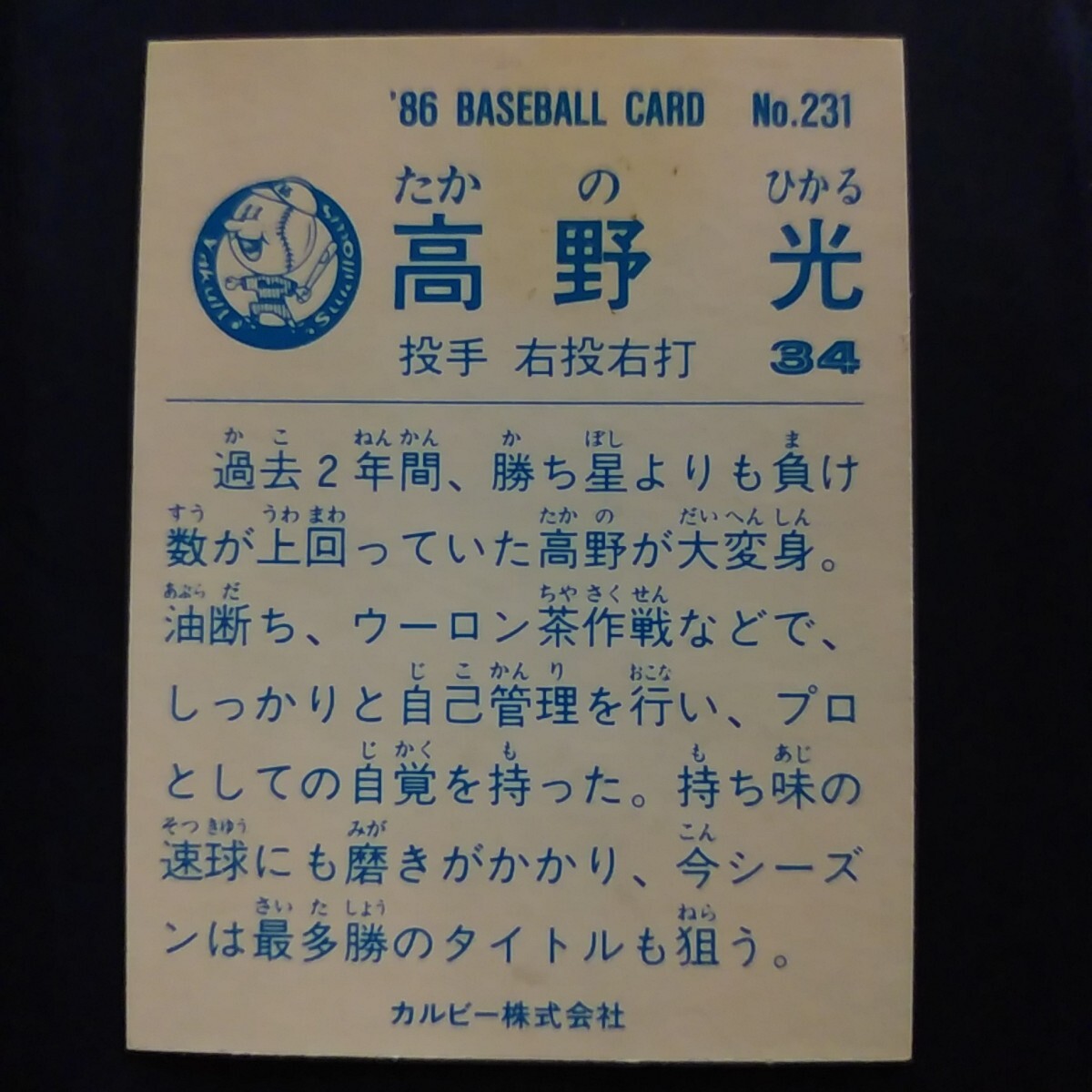 1986カルビー野球カード№231高野光(ヤクルト)
