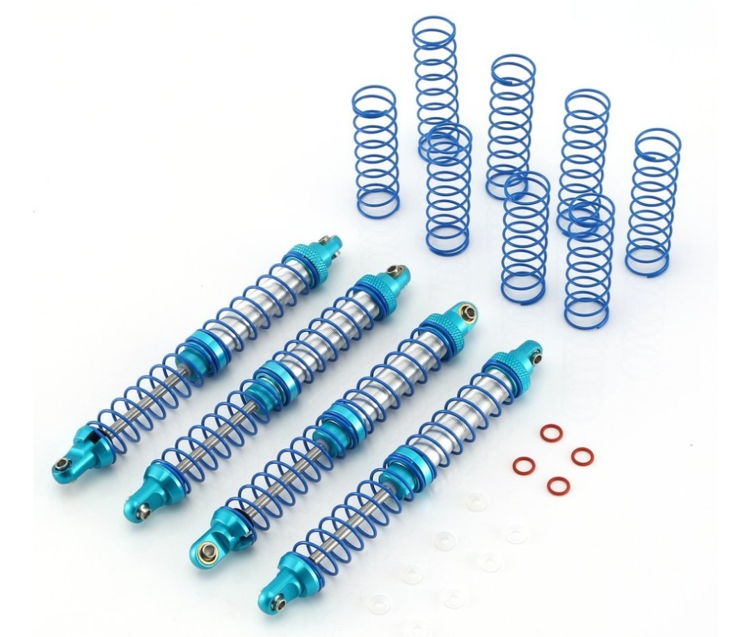 かたさ、車高調整付きで、手でダイヤルナットを回して簡単に任意の位置でスプリングを伸縮固定でき、更に交換調整用のスプリングも付属しますので、クローラーからオンロード、バギー、モントラ、トラギーまで、各メーカーの多くの車種に使えます。