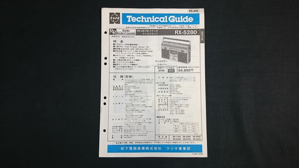 【昭和レトロ】『ナショナル(National) テクニカルガイド(TECHNICAL GUIDE) FM/AM ステレオ ラジオカセット RX-5280 昭和55年9月』松下電器産業株式会社 | |