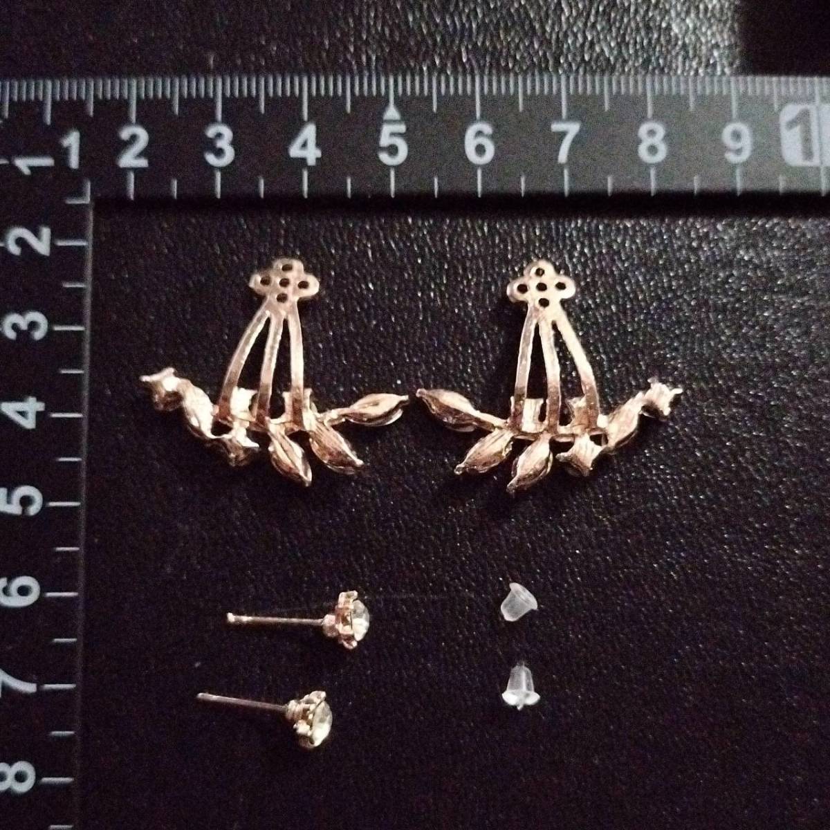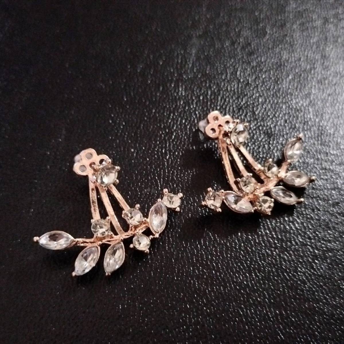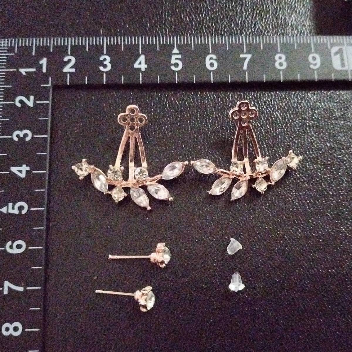 新品未使用 ピアス ローズゴールド スタッド リーフ 葉 小枝 ラインストーン レディース 韓国 枝 ファッション キラキラ 綺麗 #D114-2