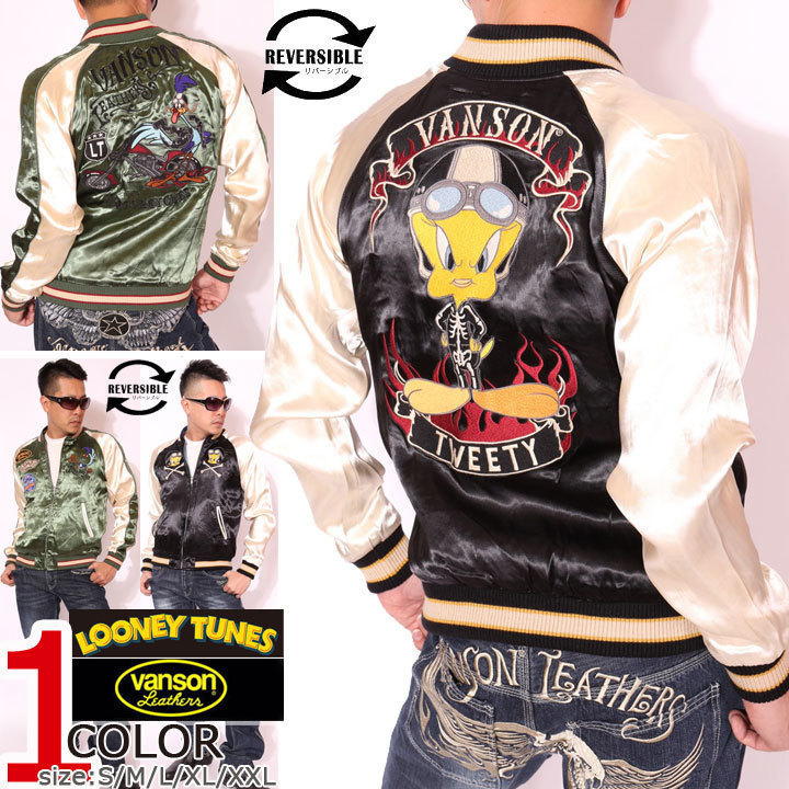 当店別注 VANSON ルーニー・テューンズ リバーシブル スカジャン【XLサイズ】LTV-705 刺繍 トゥイーティー バンソン ジャケット ブルゾン