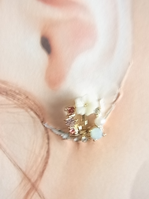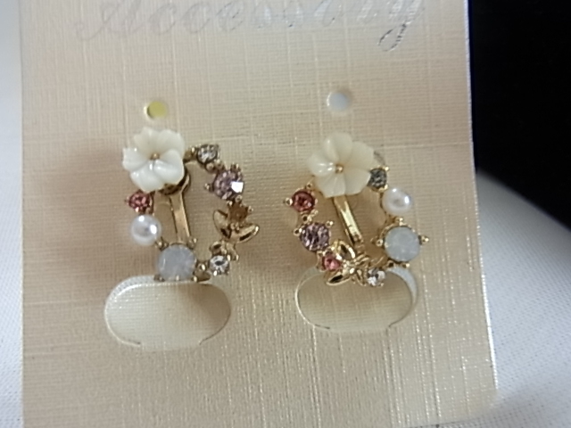 未使用品 Accessory マルチカラーのカラーラインストーンが輝く お花 フラワー ピンクが可愛い フープデザイン キュート ピアス◆