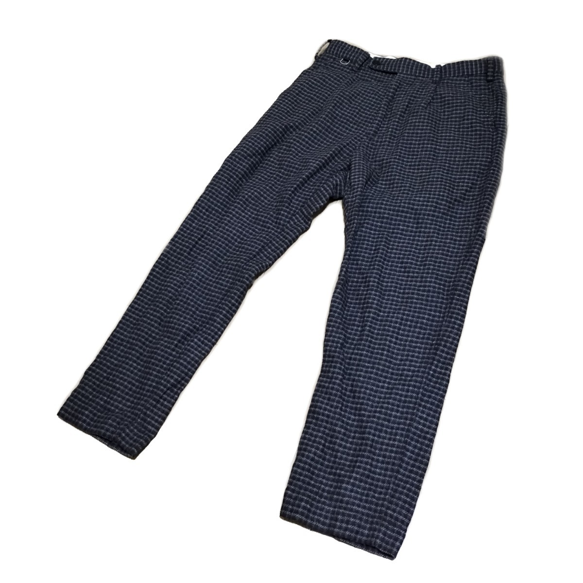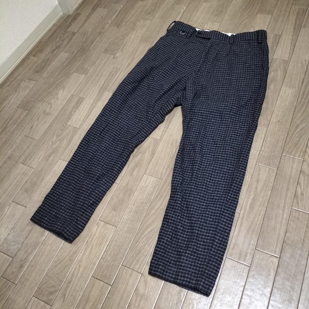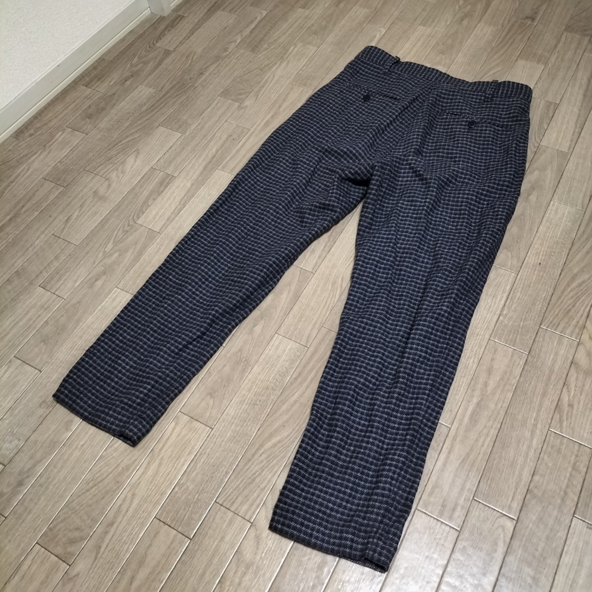★トゥモローランド ブルーワーク ウール混 スラックス パンツ ツータック ネイビー チェック柄 メンズ サイズS TOMORROWLAND BLUE WORK ブランド古着 USED