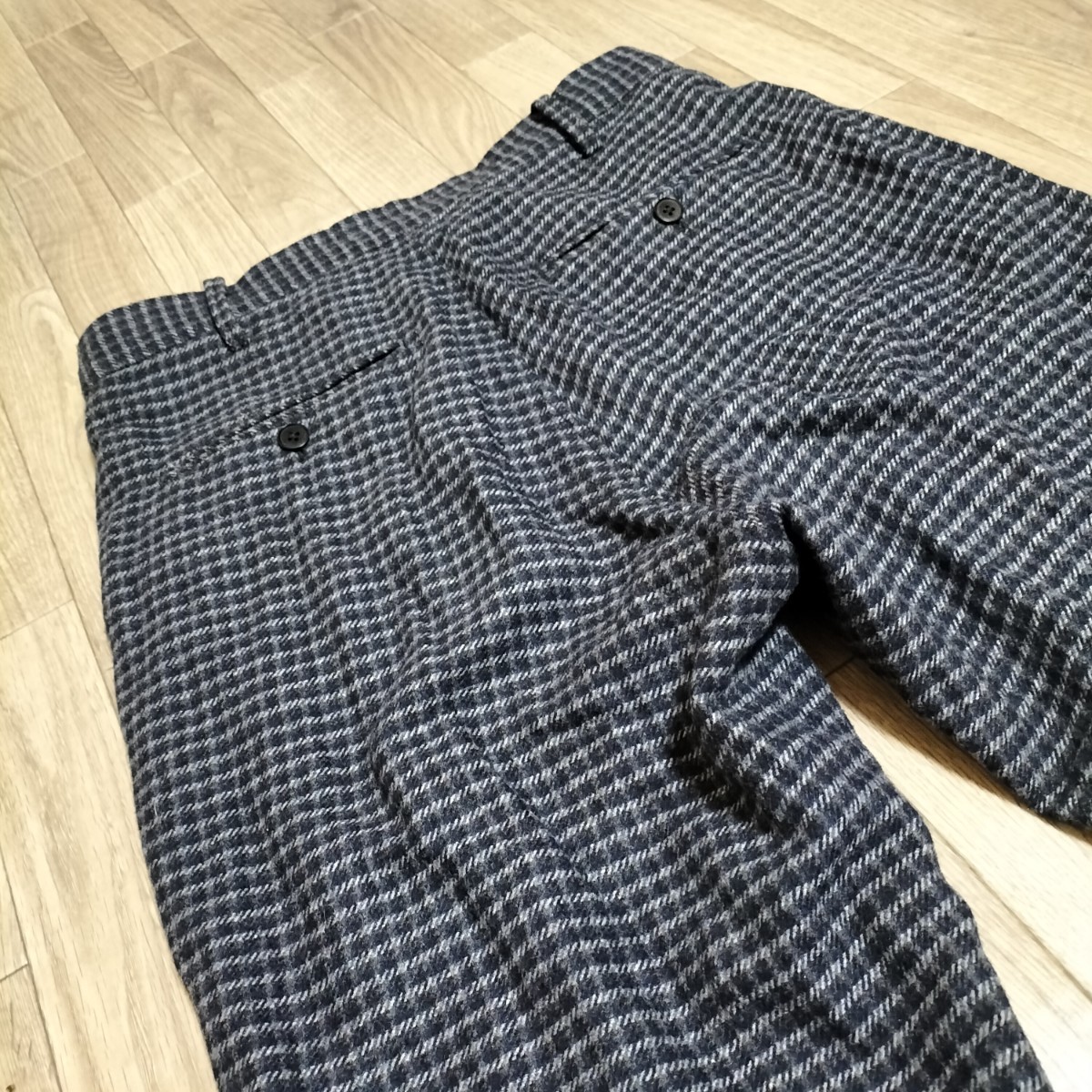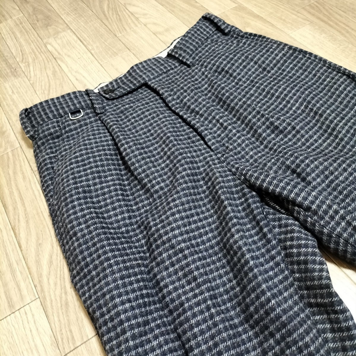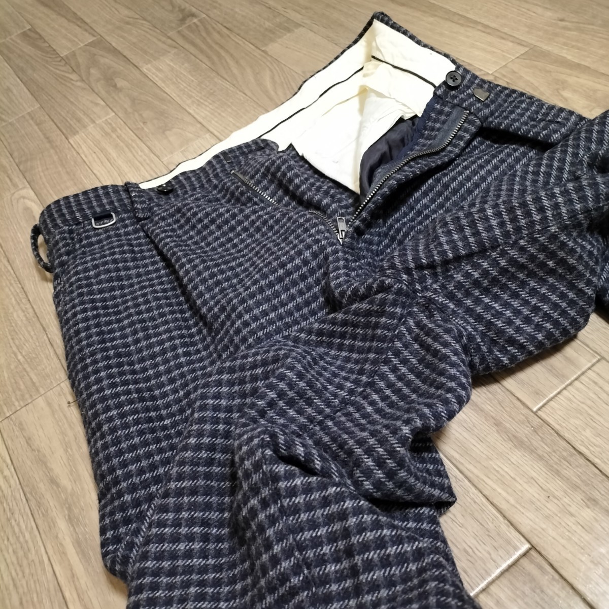 ★トゥモローランド ブルーワーク ウール混 スラックス パンツ ツータック ネイビー チェック柄 メンズ サイズS TOMORROWLAND BLUE WORK ブランド古着 USED