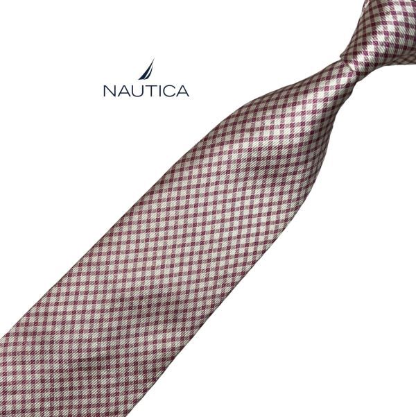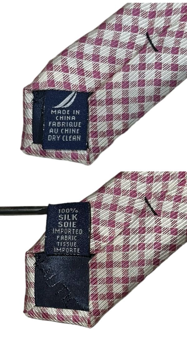 NAUTICA 高級ネクタイ チェック柄 クリーム色系 USED ノーティカ メンズ服飾小物 中古 ネコポス可 t713