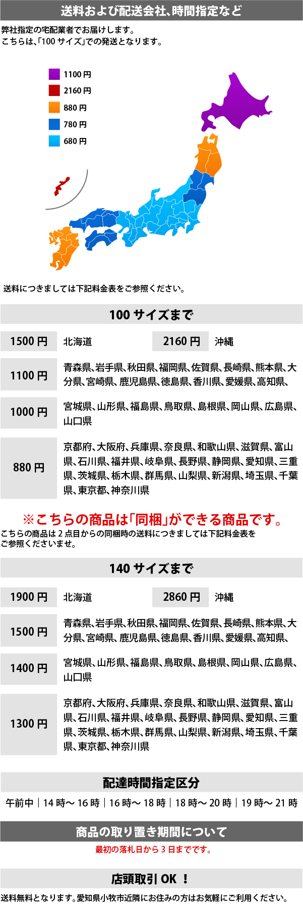 購入手続き時に送料5,000円と表示された場合は、ご落札後当社から正しい送料をご連絡いたします。