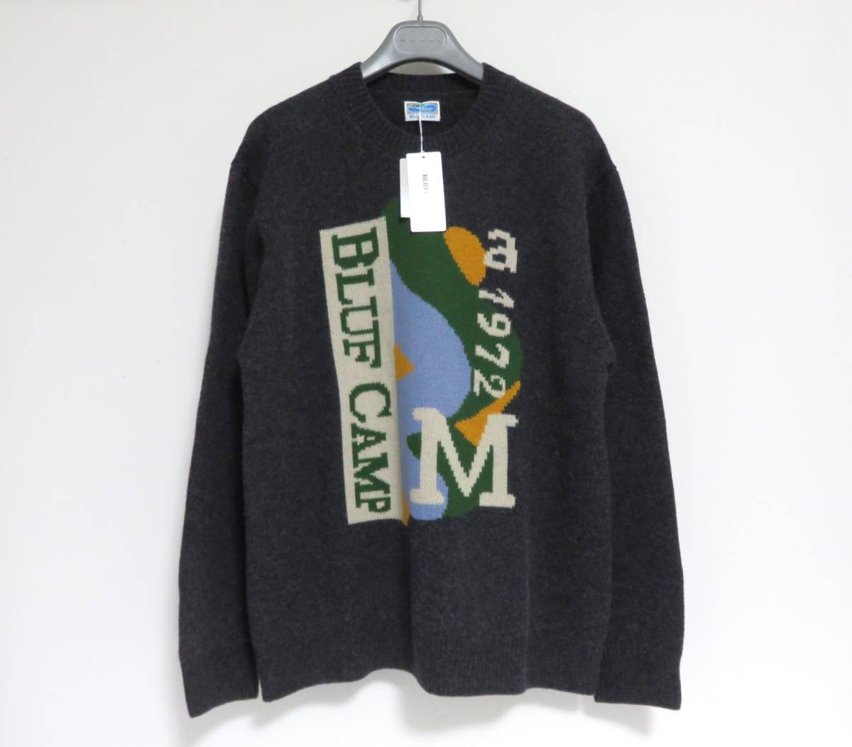 送料無料 定価4.1万 新品 BLUFCAMP Intarsia Sweater M チャコールグレー ブルーフキャンプ ニット セーター