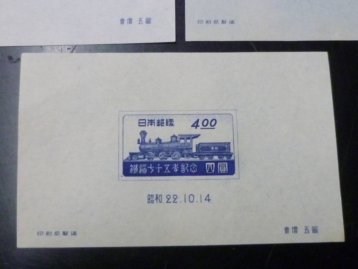 24 P 日本切手 記念 1947年 記110 鉄道75年 小型シート 計3枚 未使用NH・VF 【型価 9,000円】