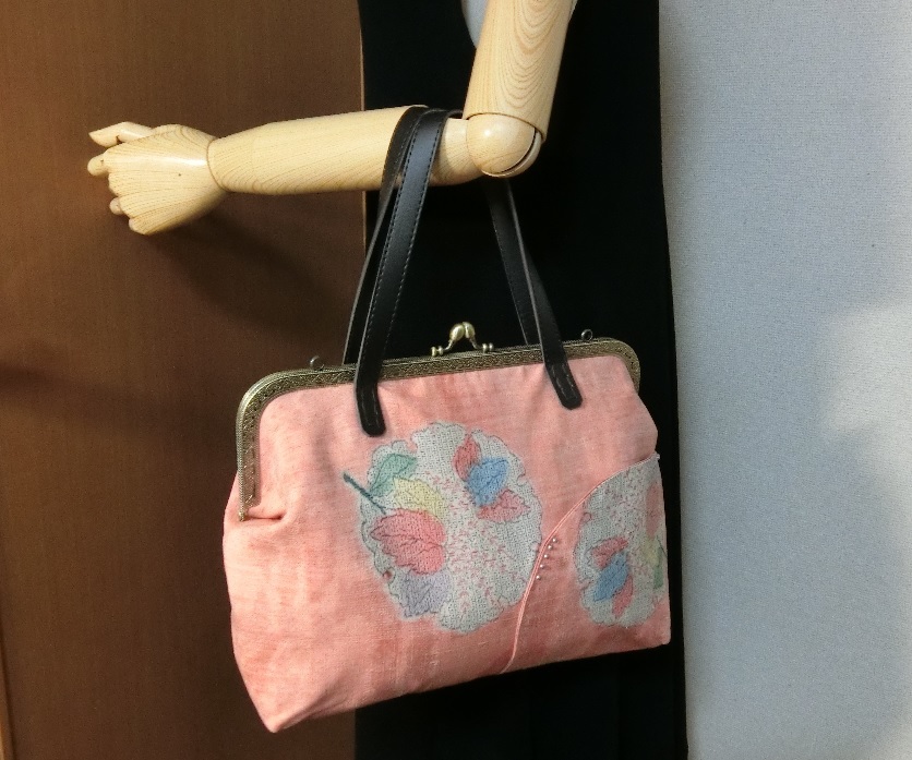 こちらの商品は、着物(紬)で作ったがま口バッグです。
