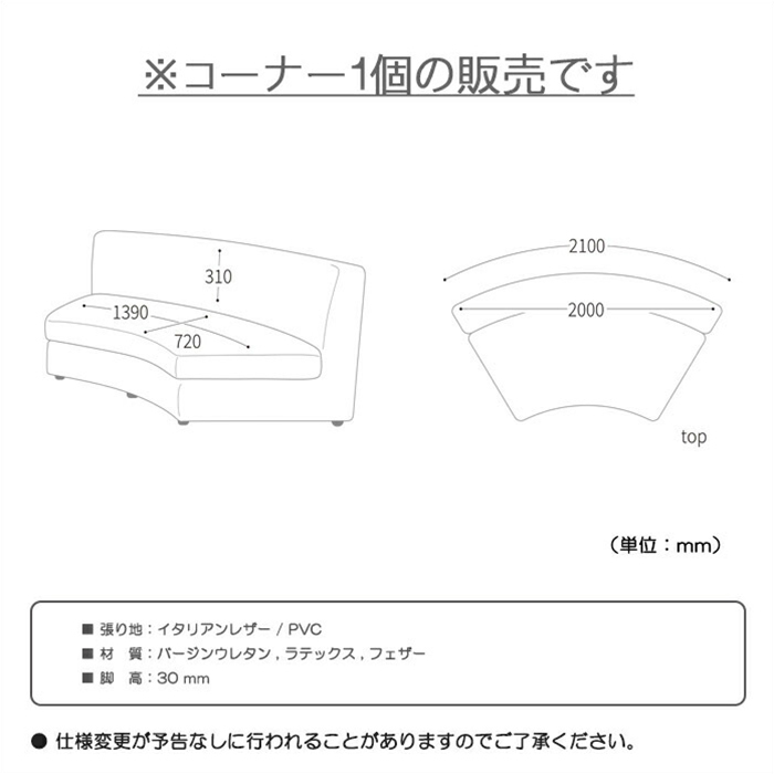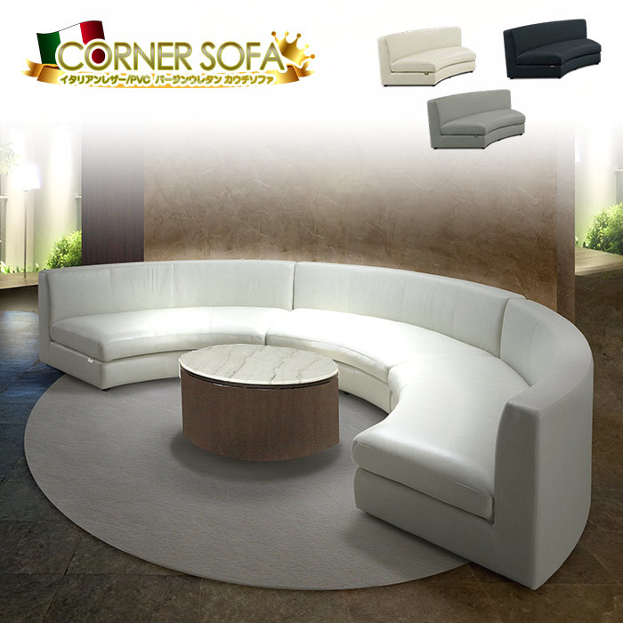幅200cm 高級本革 カーブ コーナー1点ソファ リビングソファ イタリアンレザー 合皮 Label アッシュ
