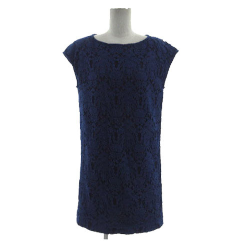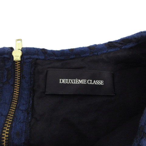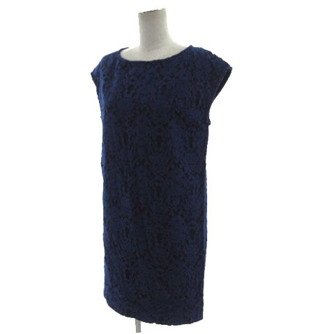 ドゥーズィエムクラス DEUXIEME CLASSE ワンピース フレンチスリーブ ひざ丈 総レース コットン混 ブルー 青 レディース