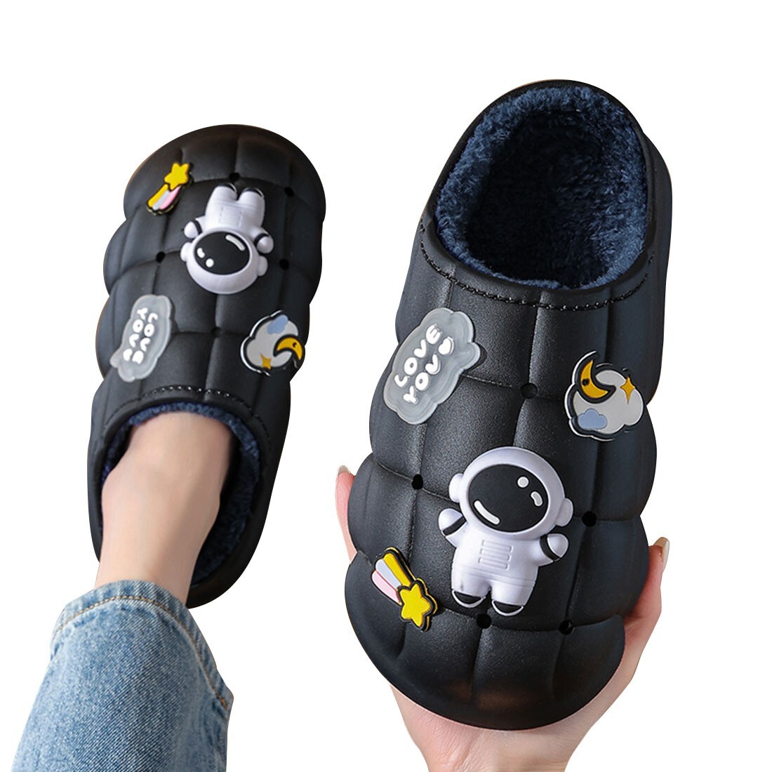 チャーム付きスリッパ 23.5cm ブラック かかと無し 大人用 レディース ボア付き 防水 厚底スリッパ 2WAY ルームシューズ 軽量 滑りにくい