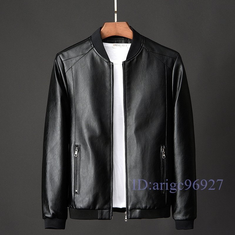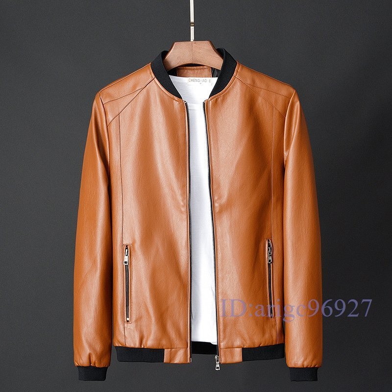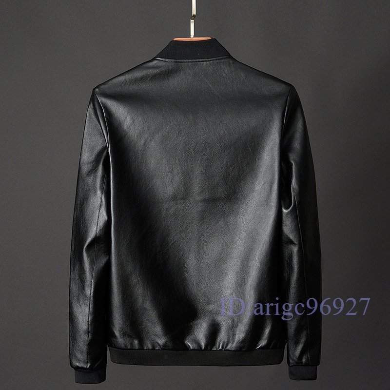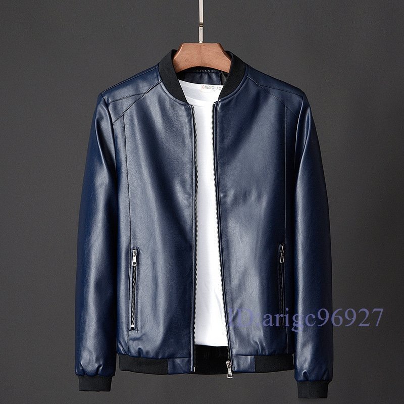 T691☆新品メンズ テーラードジャケット アウター メンズレザージャケット PUジャケット 革ジャン ブルゾン 野球服 紳士服 スリム ブルー M